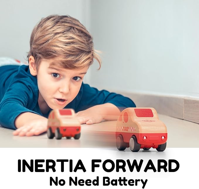 - 3 Wooden Cars: this playset comes with 3 colorful mini cars for your little driver to enjoy! Taxi, fire truck, city bus for playing different roles to drive different car toy with friends or partner.