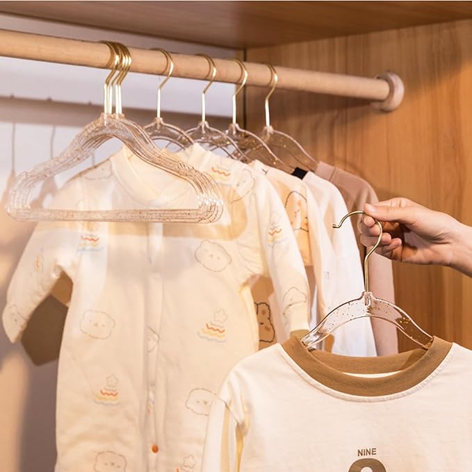 - Effortlessly Organized Wardrobe:Say goodbye to clutter and keep your little one’s closet neat with our versatile baby hangers and toddler hangers! Each pack includes 20 baby clothes hangers, giving you plenty of gold hangers kids to organize all their outfits. These essential kids hangers make tidying up a breeze