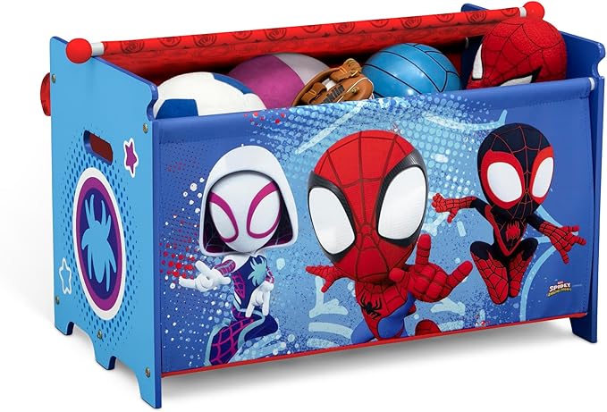 Delta Children - Marvel Spidey and His Amazing Friends 4-Piece Toddler Room-in-a-Box Set – Includes Sleep and Play Toddler Bed, Table, 1 Chair and Toy Box, Blue/Red