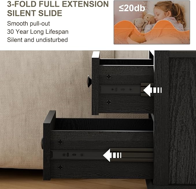 - Metal Silent Slides-Living Room Side table with high-quality metal silent slides ensure that your dreams are not disturbed. With a gentle slide to open each drawer, this labor-saving drawer adds to your everyday life.