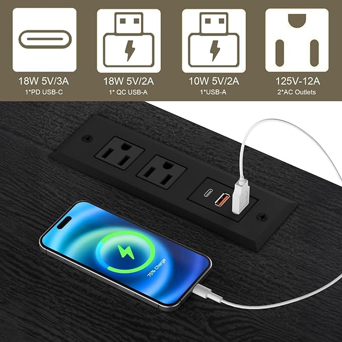 - Fast Charge Station-This living room end table with 18w fast charging can short the charging time by 2 times compare compared to a 10w. This nightstand comes with 2 standard AC power outlets, 1*PD Type-C USB port, 1*QC(3.0), and 1* USB port. No need to worry about finding your fast charger.