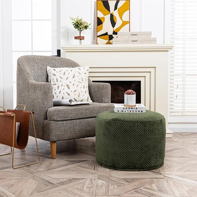 - 【Extremely Comfortable Stuffed Pouf Ottoman】This pouf ottoman cover adopts plush fiber with thick backing,fluffy and durable, holds its shape perfectly,gives a softest feeling for your feet with our fluffy ottoman foot rest.