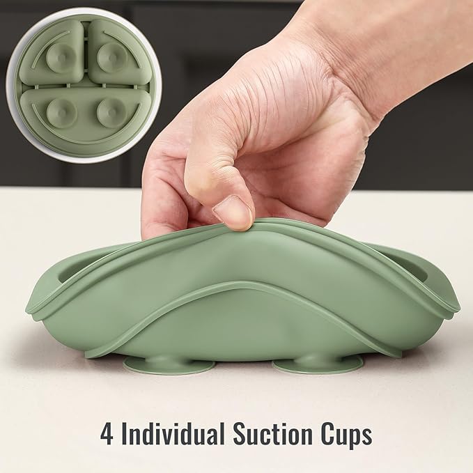 - MORE & STRONGER SUCTION CUPS: Different from the prefer one-suction plate that is easy to pull off, our plates have 4 suction cups to strengthen suction power, and each suction cup is evenly distributed on the bottom to keep the plate stable and pull proof, minimizing spills when your little ones learn how to feed themselves. It sticks well to anything, especially on children’s highchair trays and last throughout the whole meal.