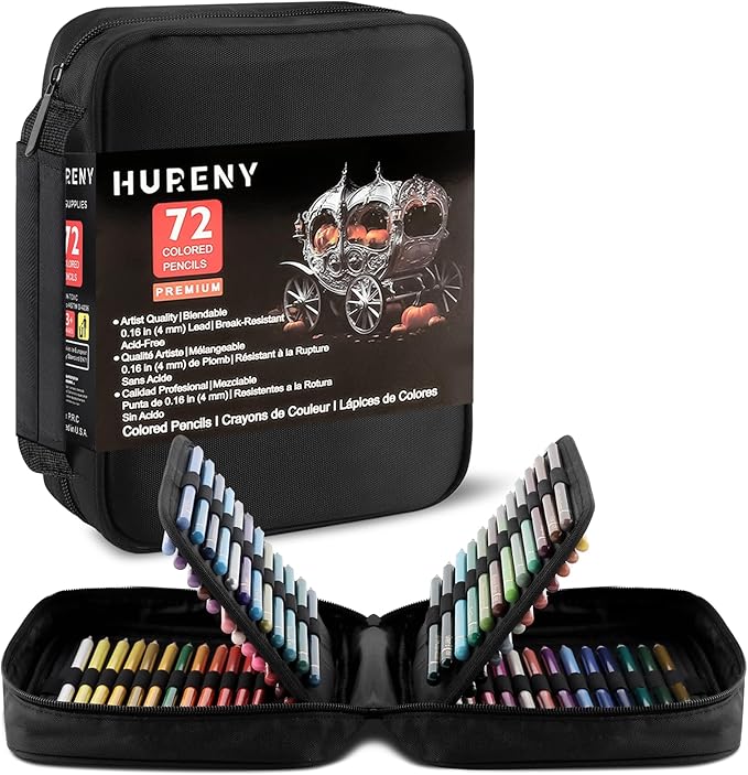 - Unleash Your Creativity with Hureny's 72 Colors Colored Pencil Set: Our colored pencils for artists offer vibrant, intense colors, suitable for adult coloring books, sketching, and mixed media designs. They cater to adults who understand the subtleties of art and are an integral part of art supplies for adults. Coming with a dedicated colored pencils with case, our pencils are equally suitable for beginners and seasoned professionals, making them a perfect choice for your coloring supplies.