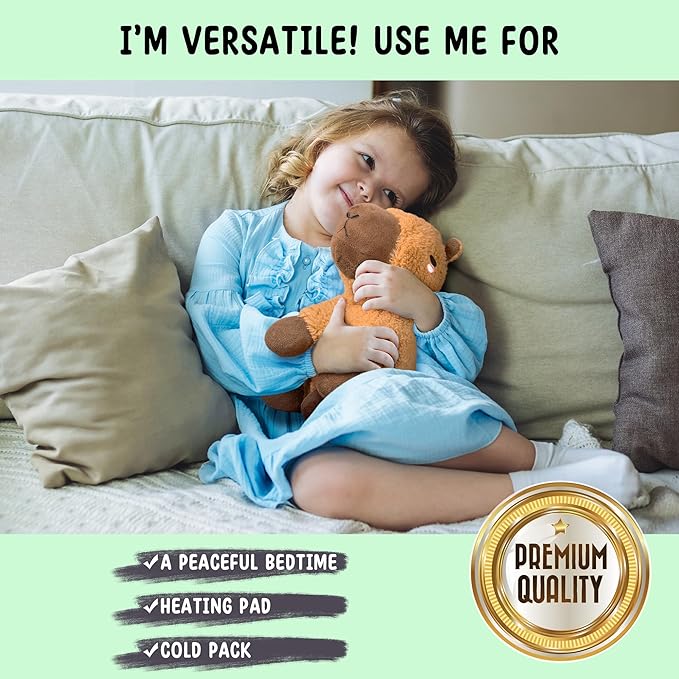 - 🌿 SOOTHING WARMTH FOR PAIN & EMOTIONAL RELIEF – Weighted and warmable, this stuffed capybara plush toy helps provide relief for period cramps, muscle aches, and everyday pains. The calming heat offers stress relief and cozy comfort, doubling as an emotional support companion for kids, teens, and adults alike.