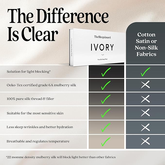 - đ BLOCK OUT LIGHT - Achieve a deeper sleep with our pure silk sleep mask. An eye cover will help you get a better nightâs sleep by falling asleep faster and staying asleep longer thanks to a boost in melatonin production.