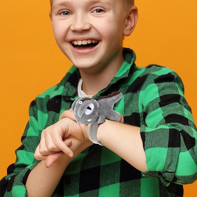 Abaodam 2pcs Animal Slap Bracelet Dinosaur Slap Bracelet Plush Stuffed Animal Hugger Snap Wrist Band for Kids Birthday Party