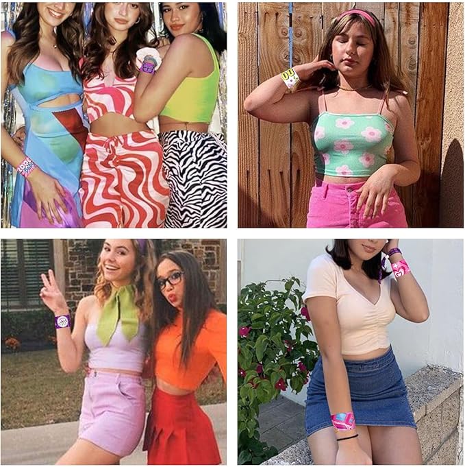 - Enough Quantity: designed for Y2K decorations, 48pcs slap bracelets are nice for throwback early 2000s parties party gifts for teen girl, adults and children, a large quantity to share with friends and give you impressive party decorations