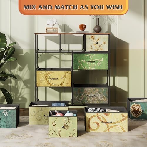WLIVE 9-Drawer Dresser, Fabric Storage Tower for Bedroom, Hallway, Entryway, Closet, Tall Chest Organizer Unit with Fabric Bins, Steel Frame, Wood Top, Easy Pull Handle, Floral Painted