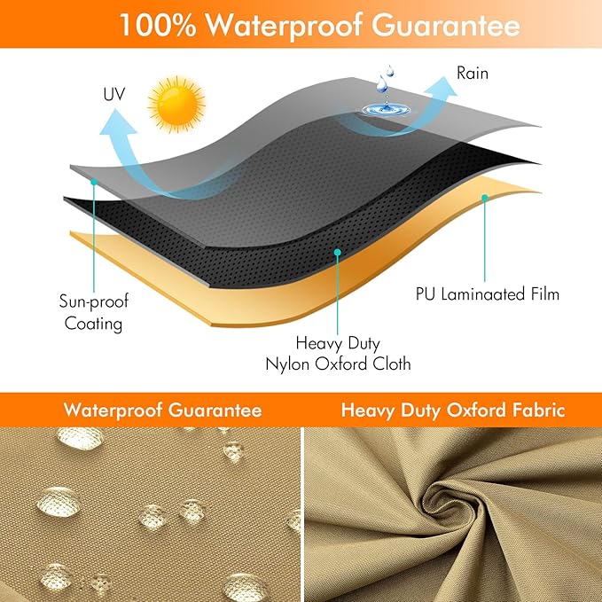 - 100% WATERPROOF: WLEAFJ patio chair cover is made of heavy duty oxford fabric with UV-stabilized & Waterproof coating and a waterproof laminated backing. Passed particular waterproof test by authoritative third party, No worry to leak anymore.