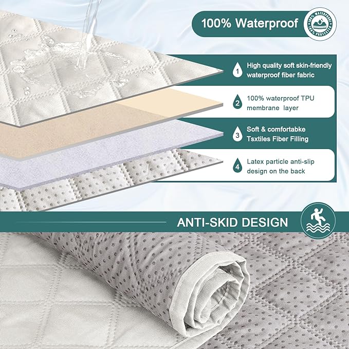 - WATERPROOF MATERIAL: Made of choiceness material, quilted from 4 layers fabric. The outer layer is made of waterproof polyester and the inner-layer is filled with thick fabric to make it more soft. It would be a great choice for homes with kids and pets