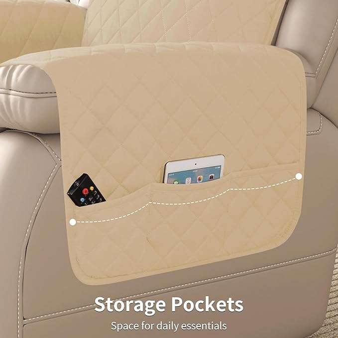 CHUN YI Recliner Chair Cover, Non-Slip Recliner Covers That Stay in Place, Washable Lazy Boy Recliner Covers with Pockets, Water Resistant Recliner Slipcover for Pets (Sand, Small Recliner)
