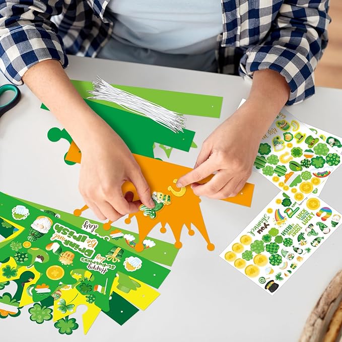 - Wide Applications: The St. Patrick's crafts can be applied for St. Patrick's day classroom activities, holiday parties, Irish party and green themed party, you can also use them as St Patrick’s Day costume accessories. Make your own St. Patrick's Day paper hats with these simple and fun card and sticker activities. These St. Patrick's day craft kits will bring more fun for kids.
