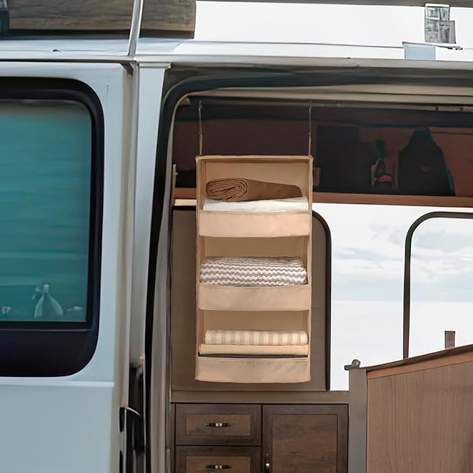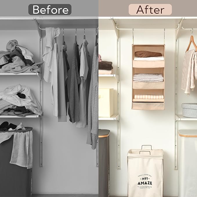 GRANNY SAYS 3-Shelf Hanging Closet Organizer, Khaki Closet Storage Hanging Shelves