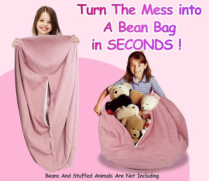 - Cover Fun and Educational: This stuffed animal storage bean bag is the perfect solution for parents looking to bring order to their children's messy toy collections. Transforms tidying up into a fun and enjoyable activity for kids. It is perfect for storage and to make more space in your room. With its cute and fun design, this stuffed animal bean bag chair adds a touch of charm to any room and becomes a favorite spot for children to relax, read, or play.