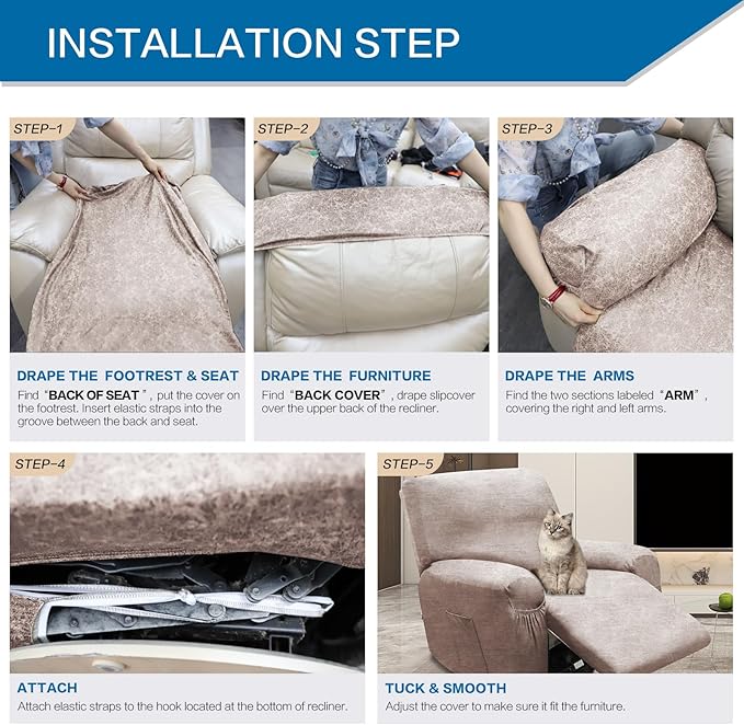 - Stretchy: Install easily like wear a glove, 4 pieces lazy boy recliner covers install in few mins. recliner chair slipcovers is easy to removable and wash.