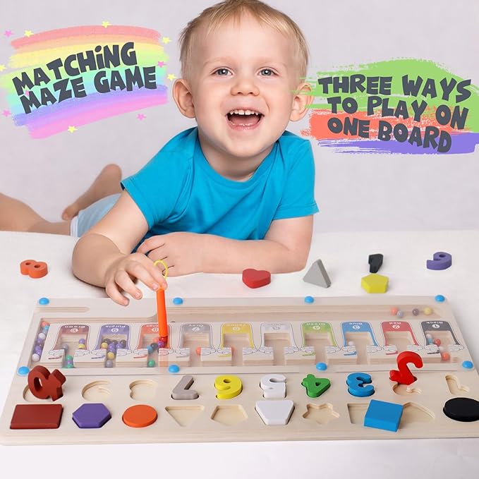 - 3-in-1 fine motor toys: magnetic color and number maze + shape and number matching game. These Montessori toys for 3 4 5 year olds will keep them quiet and focused, enjoy color sorting and counting, and stimulate interest in learning math. Children love playing this matching game, which builds hand-eye coordination as well as patience and concentration.