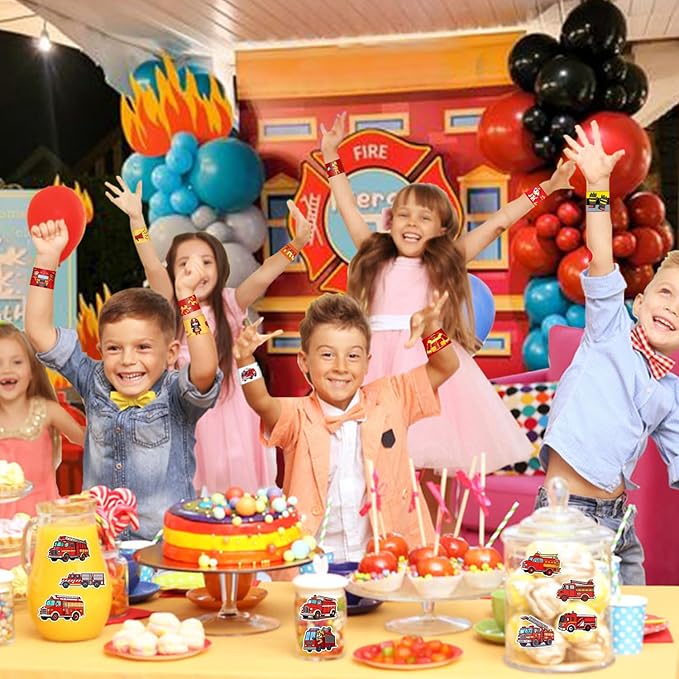 - Truck Birthday Party Supplies: This stretchable fire truck slap bracelets adopt vivid police car design, bright in colors and eye catching, various items are designed with fire theme, and they allow you to use for playing the role of a firefighter, while allowing kids to learn about knowledge of firefighting, understand and how to use fire equipment, which greatly improves children's curiosity and exploration ability