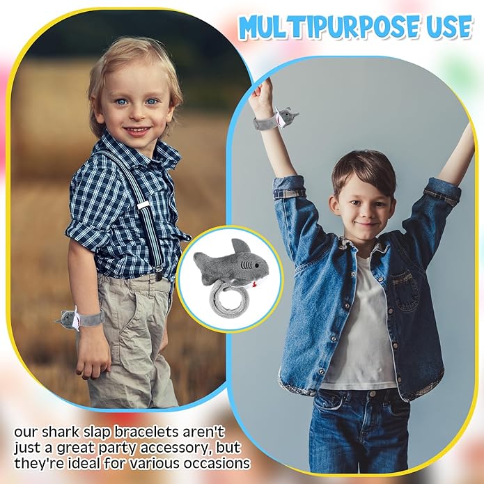 - Interactive Fun: kids can enjoy hours of interactive with these plush slap bracelets for kids, measuring about 2.4 x 9.8 inches/ 6 x 25 cm, designed with the look of sharks, fit for boys and girls, the plush bracelets can certainly spark a child's imagination far more than regular bracelets