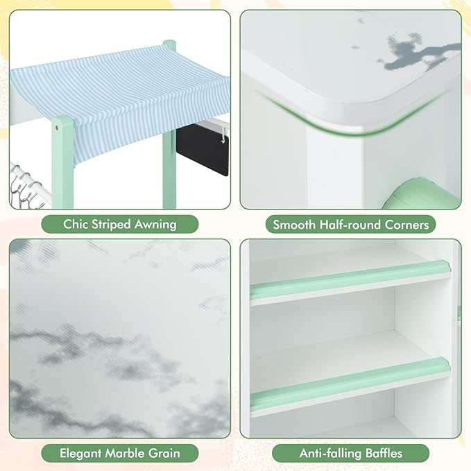 • 【Spacious & Flexible Storage】: The toy kitchen set boasts a large storage capacity with multiple open and enclosed storage areas. After playing, toddlers are able to organize and classify all the items to develop a good organization habit.