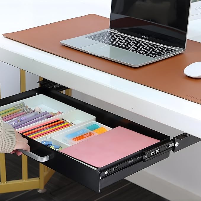 - Great Addition: This undermount drawer organizer is a practical pull-out shelf for your wooden workbench, counter table to expand storage space in minutes! Ideal as a standing desk drawer attachment. It serves as a tool chest to access your daily supplies like keyboard & mouse, stationery essentials and other small desktop items in home office, craft rooms or workshops.