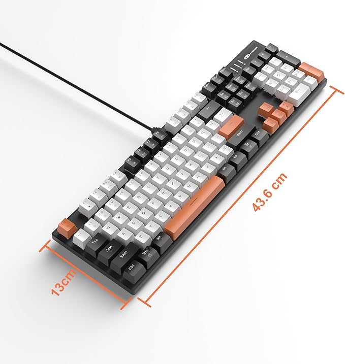 - ANTI GHOSTING KEYBOARD: All keys have individual switches with full n-key rollover, which provides faster response and better keystroke feeling. 104 mechanical keys are conflict free, allowing you to press or hold multiple keys simultaneously. 12 multimedia combination keys on the top of the keyboard (FN+ F1~F12) offer quick operations, great for gaming and office.