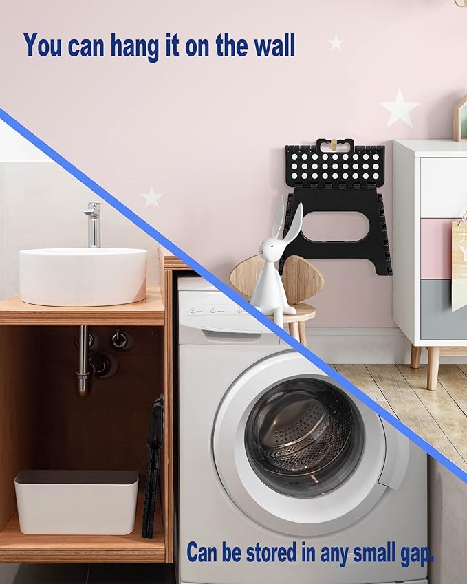 - ✔【Space Saving Foldable Stool 】-ACKO step stool save your closet space more than 90% when it folded up.It's quickly and easily folds away for convenient storage so you can opens with one flip of the hand.Also you can hides them in corner at home because it's so compact.
