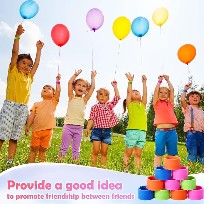 - Playful and Versatile Material and Colors: step up your accessory game with our party wrist strap; These bracelets feature a durable silicone outer layer and a flexible metal inside, they come in vibrant colors of dark blue, rose red, green and orange; From casual outings to themed parties, these fun and colorful slap bracelets make a delightful statement that cheers up your overall look