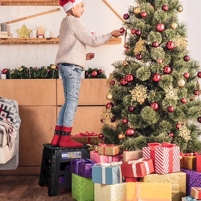 - 【Folding Stool Space Saving And Easy to Carry】ACKO collapsible step stool is only 1.5 inches thick when folded that is easy to store in any small corner of home,And the folding stool of the weight is 2.58 lb,Lightweight that Portable to Carry Out