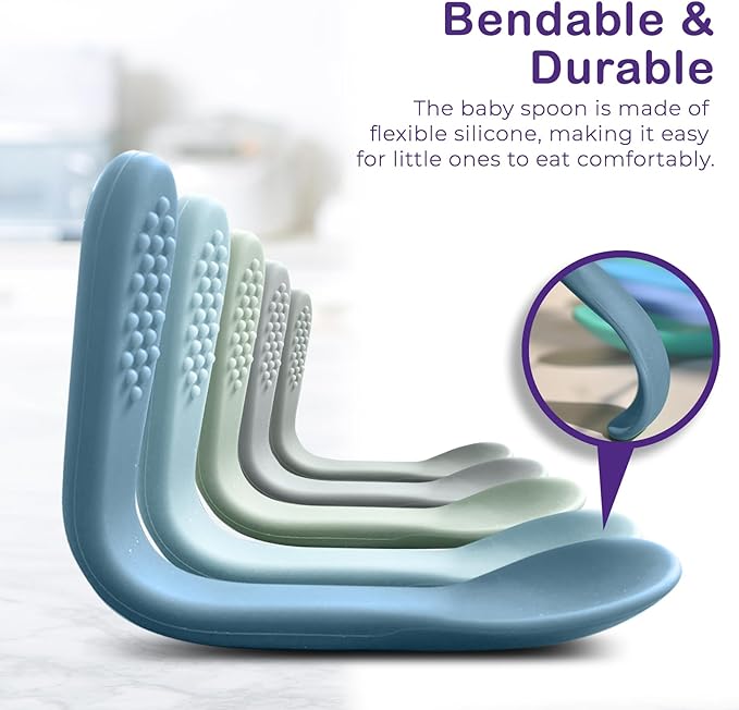 Baby Spoons First Stage Silicone Baby Spoon – Self Feeding Baby Utensils – Infant Spoons First Stage Baby Feeding Spoon - Soft & Gentle on Gums - BPA Free Silicone Baby Spoons Set (Pastel6)