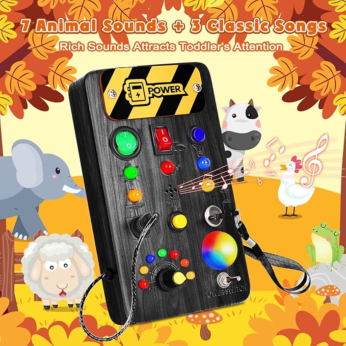 - 🎵【Toddler Music & Animal Sounds】The Interesting and unique sensory board will Improve their recognition ability and sensory activity. Toddlers learning toys also play three popular children's songs and animal sounds which Will Keep Your child busy on the whole travels
