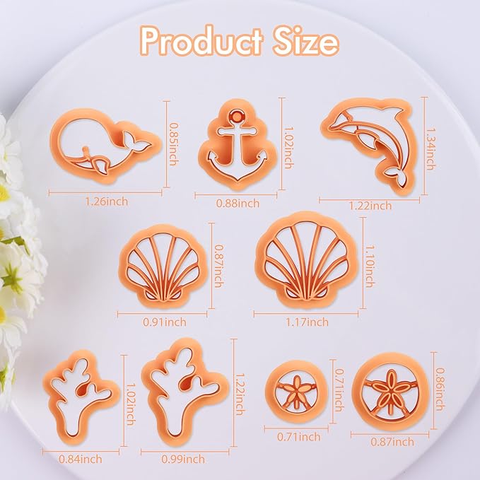 - Sea Animal Polymer Clay Cutters: You will find sand dollar, dolphin, seashell, anchor, whale and coral shape clay cutters for this clay cutters set. 9 pcs ocean animal clay cutters are packed in a small plastic box, easy for storage.