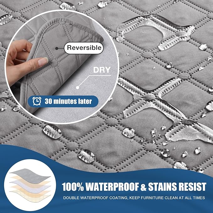 - DOUBLE WATERPROOF LAYER - 100% PROTECTION: Our recliner chair cover adopts new double-layer waterproof treatment technology, providing 100% waterproof and leak-proof function; Protect your furniture from spills, daily wear and tear or pet hair, ensuring your furniture always stays clean and dry