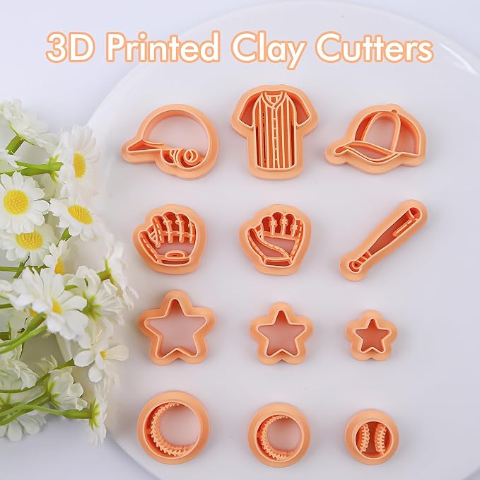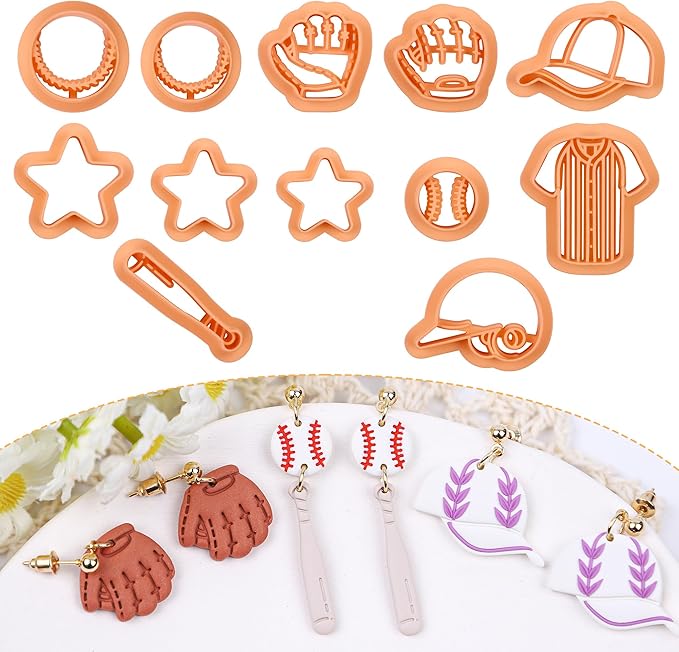 - Baseball Sports Clay Cutters: You will receive 12 clay cutters for this set. It's a new model for our sports clay cutters collection. You will find baseball cap, bat, gloves and sportswear shape clay cutters for this set.