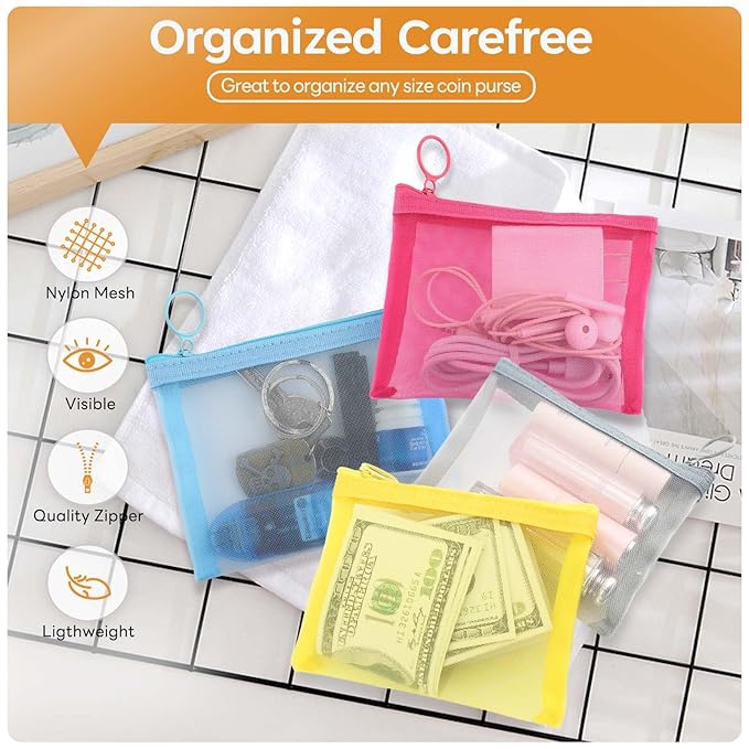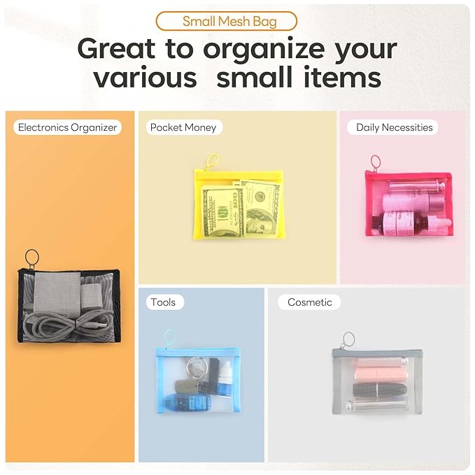 - 【Multifunctional organizer】You will receive 5 mesh cosmetic bags in a package with 5 colors, there are enough quantities and colors for you to meet your daily needs and replace requirement, which will bring you a good mood.You can also share them with your family or friends.