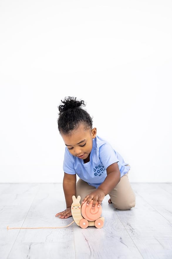 Pearhead Montessori Snail Pull Toy, Pull Along Wooden Toy, Early Development Push and Pull String Toy, Motor Skill Toy for Toddlers Ages 1+ Year