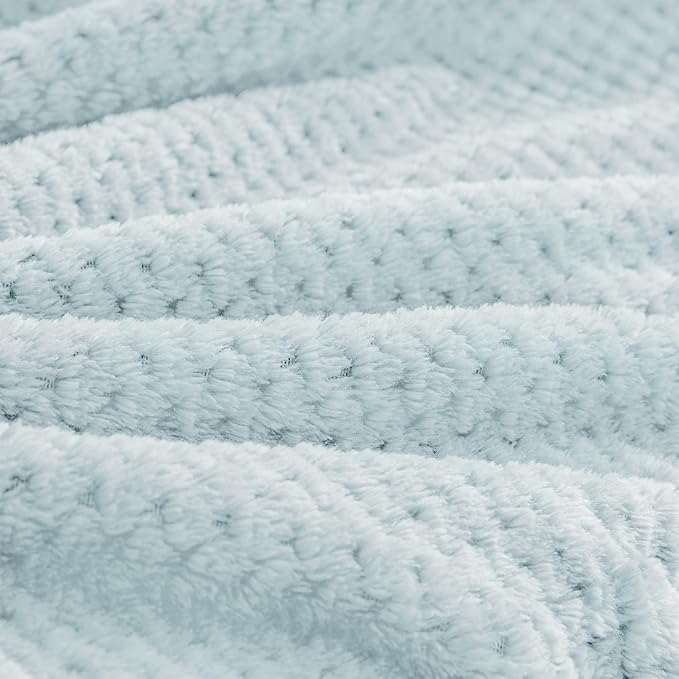 BEDELITE Travel Blanket with Bag, Ultra-Soft Jacquard Fleece Blanket with Luggage Sleeve & Backpack Clip, Airplane Blanket Travel Essentials, Blue