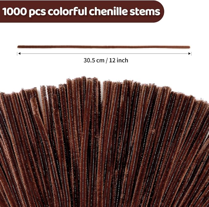 Eppingwin 1000pcs Pipe Cleaners, Dark Coffee Pipe Cleaners Craft Supplies, Brown Chenille Stems for DIY Arts Crafts Project(Brown)