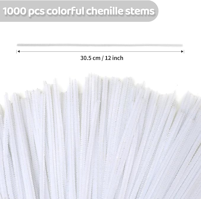 Eppingwin 1000pcs Pipe Cleaners, White Pipe Cleaners Craft Supplies,Chenille Stems for DIY Arts Crafts Project(White)