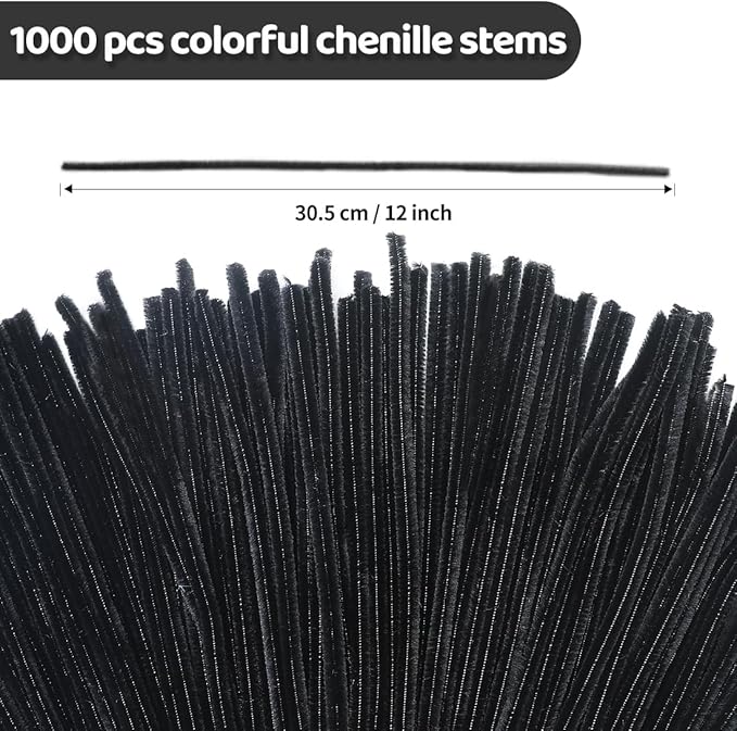 Eppingwin 1000pcs Pipe Cleaners, Black Pipe Cleaners Craft Supplies,Chenille Stems for DIY Arts Crafts Project(Black)