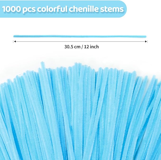 Eppingwin 1000pcs Pipe Cleaners, Light Blue Pipe Cleaners Craft Supplies,Chenille Stems for DIY Arts Crafts Project(Light Blue)