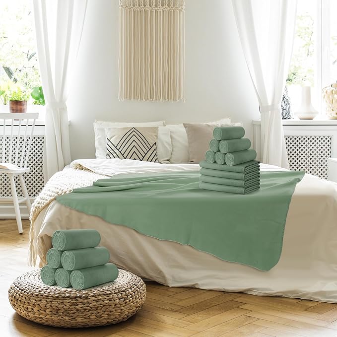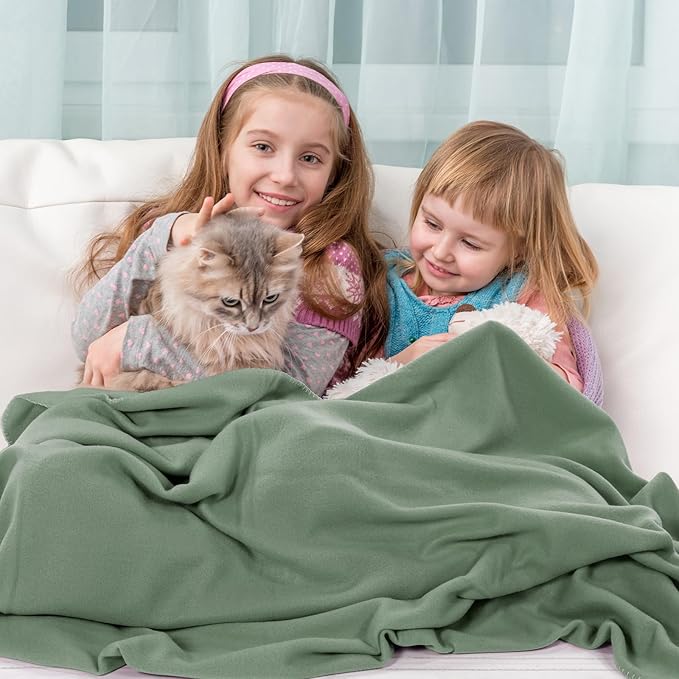 Buryeah 10 Pcs Fleece Blanket Bulk Soft Warm Fleece Blankets Cozy Lightweight Throw Blankets Plush Pet Throw Blanket for Home Bed Sofa Office Wedding Gifts Travel(50" X 60",Army Green)