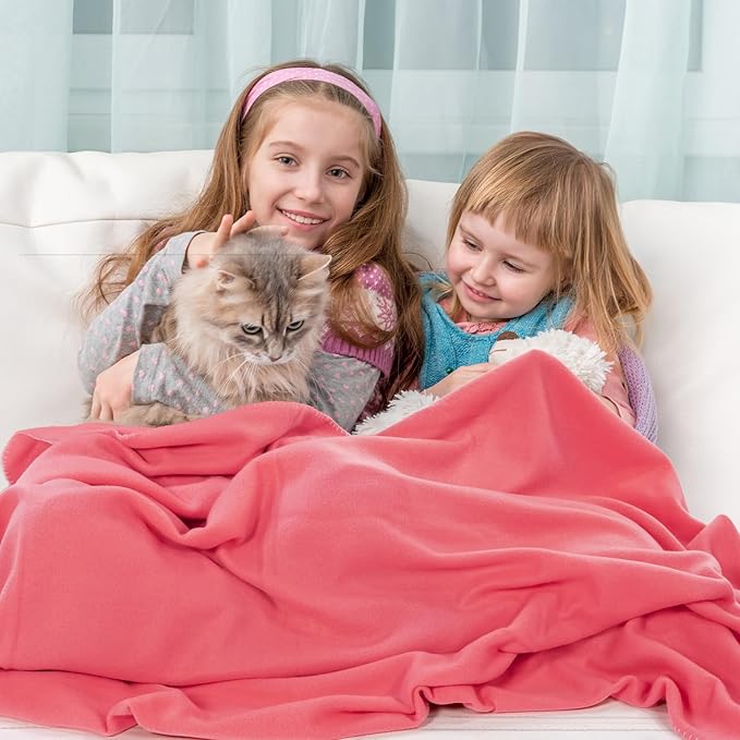 Buryeah 10 Pcs Fleece Blanket Bulk Soft Warm Fleece Blankets Cozy Lightweight Throw Blankets Plush Pet Throw Blanket for Home Bed Sofa Office Wedding Gifts Travel(50" X 60",Coral)