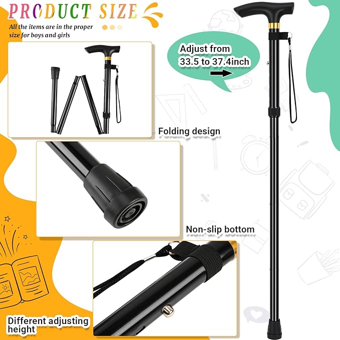 - 【Suitable Size】wig with high elastic lining, which is suitable for most people .lady glasses one size fit all age.The metal clasp of necklace can securely hold the necklace around your neck without worrying about it falling off.Old man cane is a detachable walking stick, which is assembled into a whole by three parts,the length is 31.5 inches.Please refer to the image for detailed dimensions.