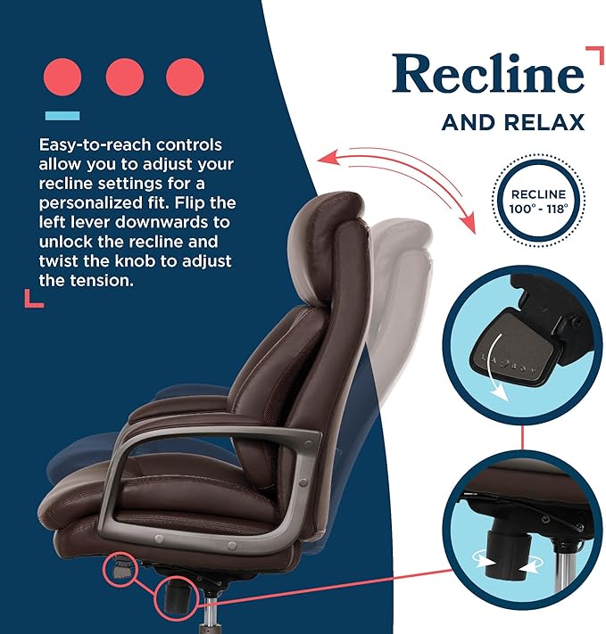 La-Z-Boy Nova Vegan Leather Modern Executive Ergonomic Design Office Chair, Memory Foam Thick Contoured Seat Back with Patented Lumbar Support Technology, Soft to Medium Sit Comfort, Brown