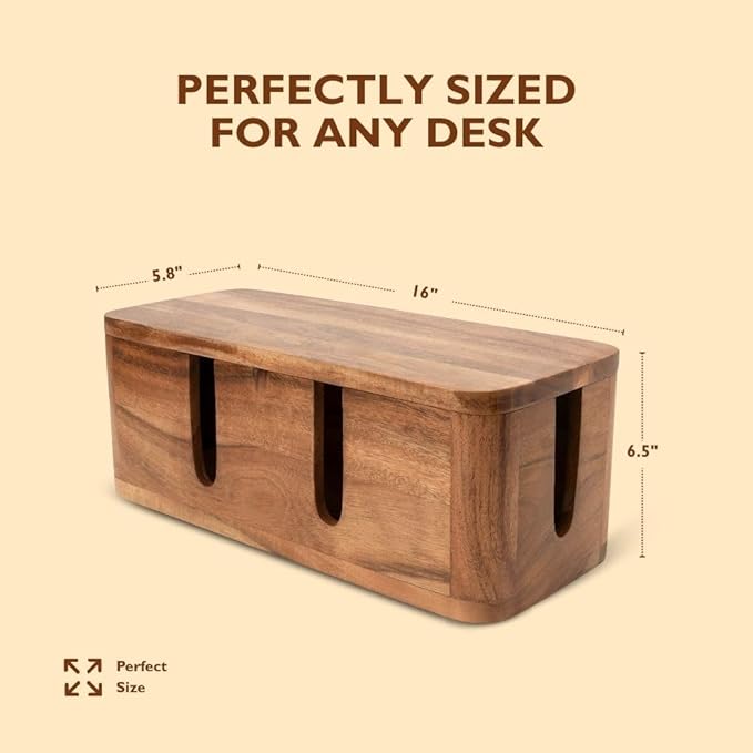 Cable Management Box & Cord Organizer- Cable Organizer for Desk, Home, Office. Hides Wires, Surge Protectors, Power Strips. Eco Friendly Mango Wood Cord Management Solution (Natural Acacia)