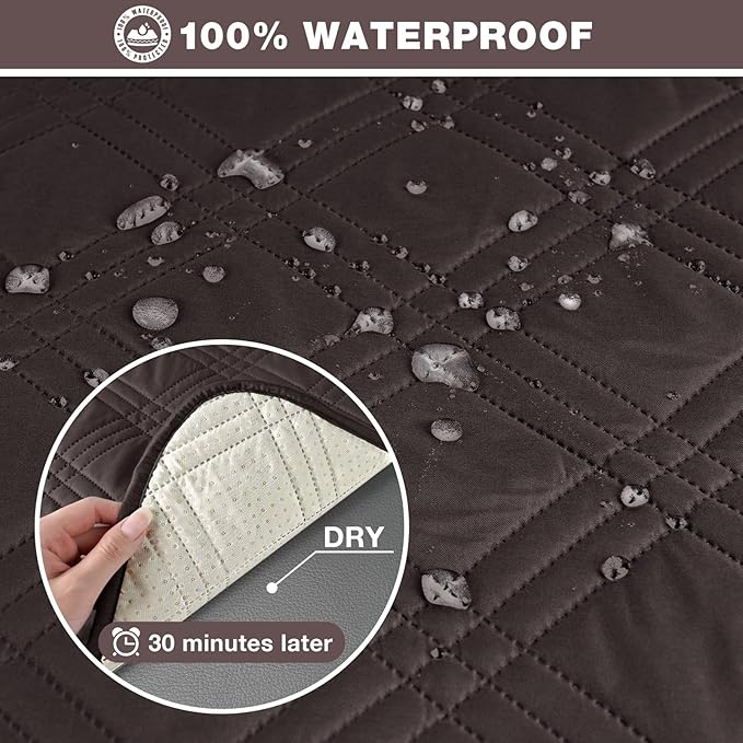 TAOCOCO 100% Waterproof Oversized Loveseat Recliner Cover, Non Slip Split Loveseat Covers for Reclining Loveseat with Elastic Straps for Kids Pets(Oversized 2 Seater, Coffee)