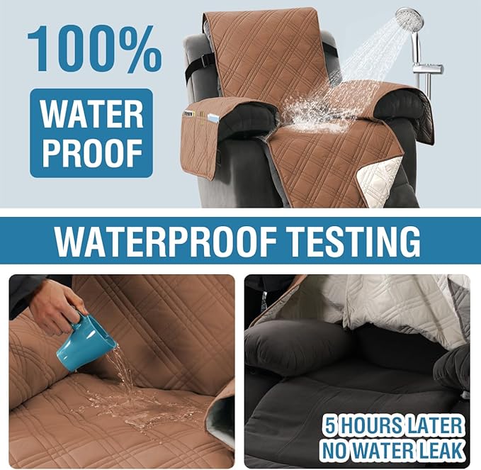 H.VERSAILTEX 100% Waterproof Recliner Chair Covers Large Size Oversized 1-Piece Recliner Covers for Large Recliner with Elastic Straps Sitting Width Up to 28" (Oversized Recliner, Terracotta/Beige)