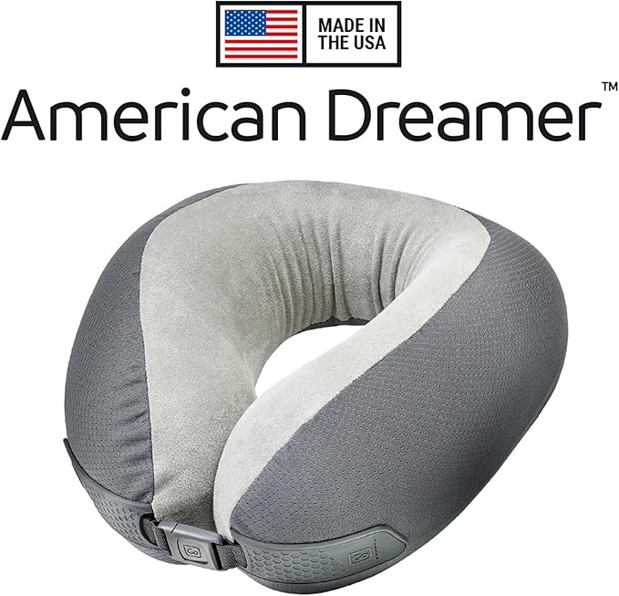 American Dreamer, Deluxe Travel Pillow, Comfortable Memory Foam Neck Pillow for Uninterrupted Sleep, Ideal for Airplane, Bus, Car, and Train, Travel Essentials, Made in USA, Gray