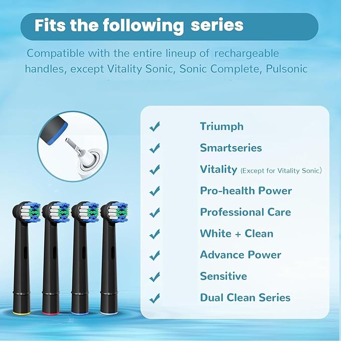 - Great Fit for Various Models - Genkent brush head is compatible with Oral B Braun electric toothbrush models (including Vitality Precision Clean, Professional Care, Triumph, White + Clean, Advance Power, Sensitive and Dual Clean Series) except Vitality Sonic, Sonic Complete, Pulsonic and iO.
